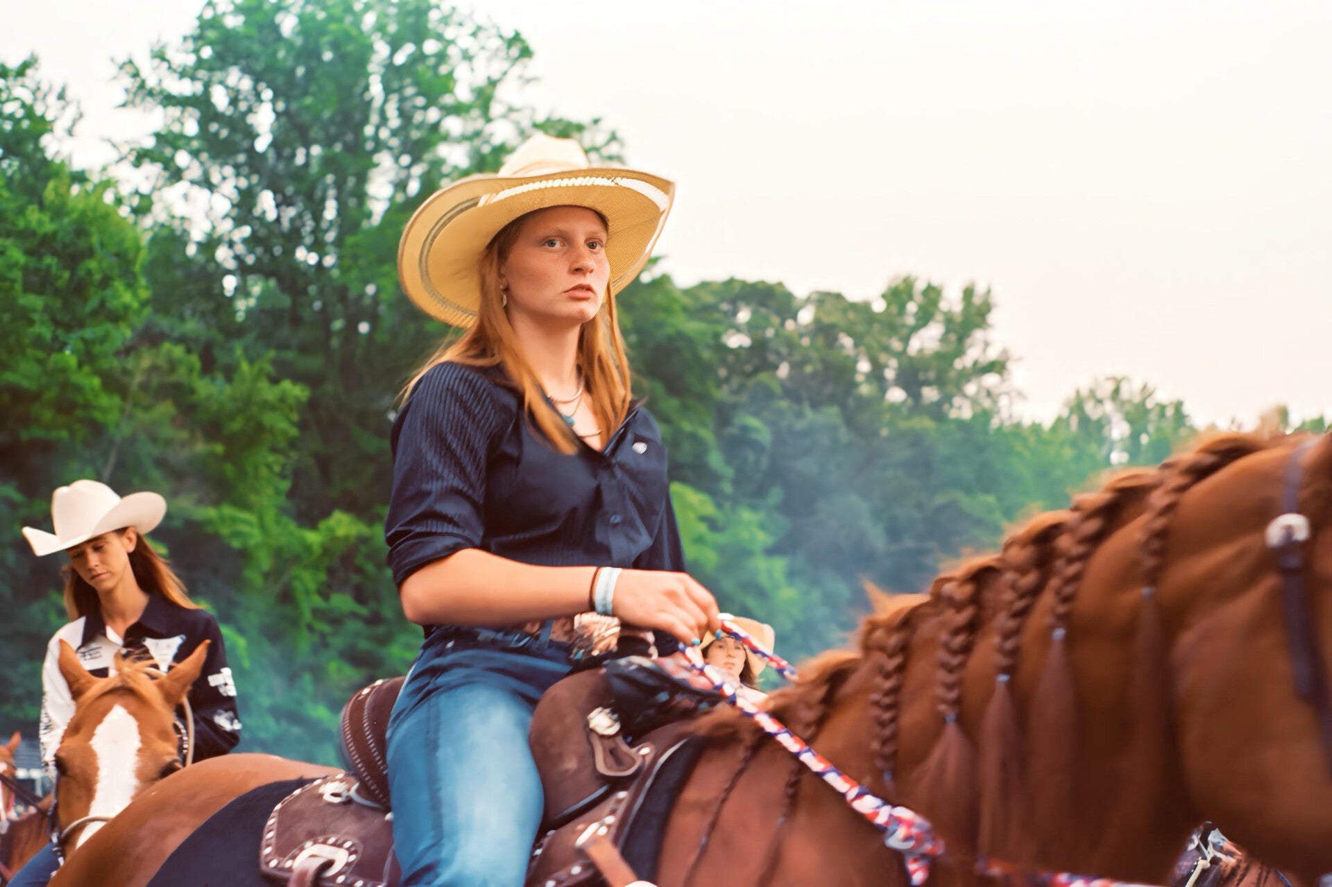 Riders enter the arena at a steady trot, focused and composed.